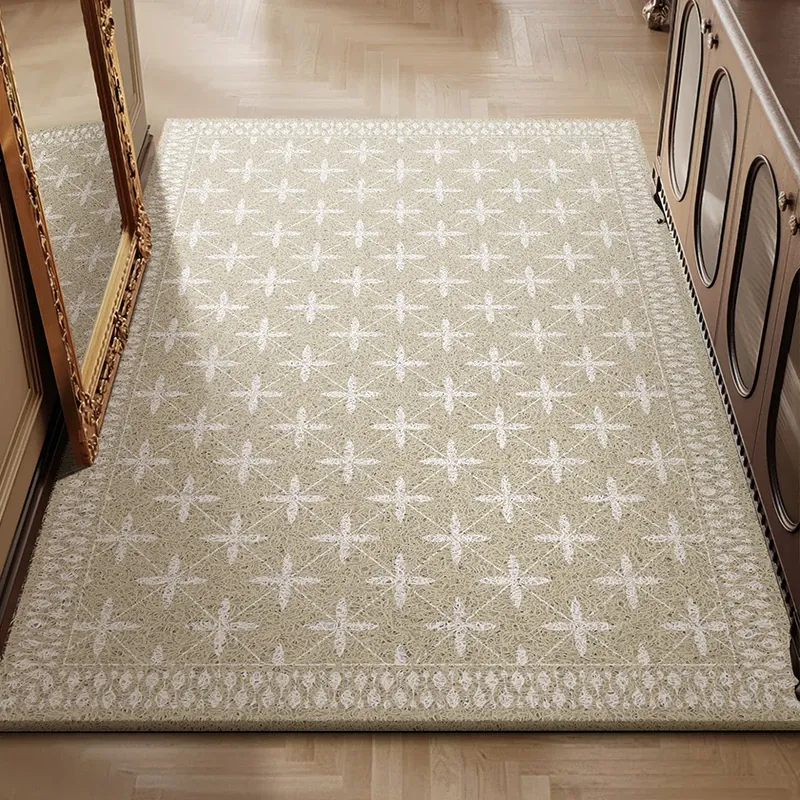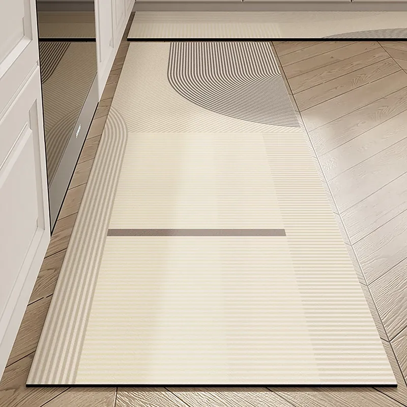 キッチン専用の侘寂風防油レザー滑り止めマット - 防水・汚れ防止・お手入れ簡単な玄関マットで、スタイリッシュな空間を演出!