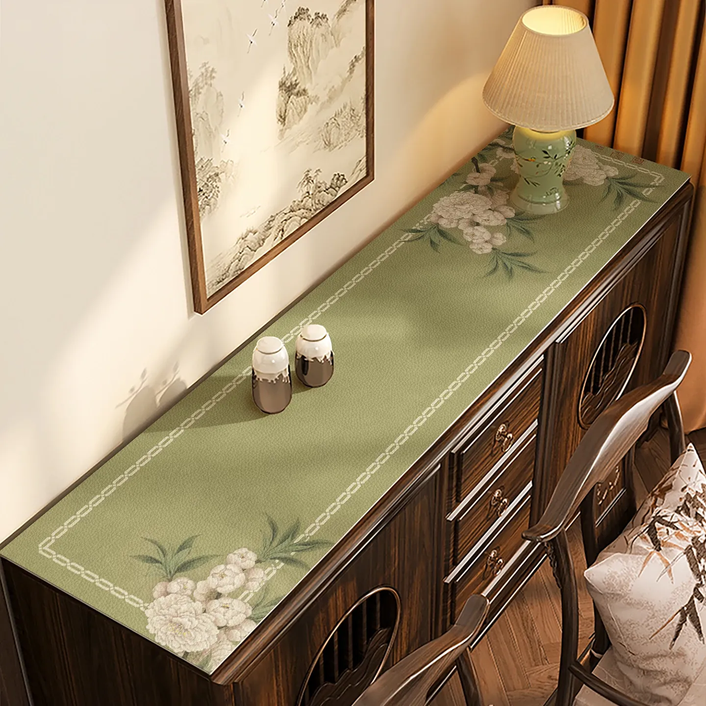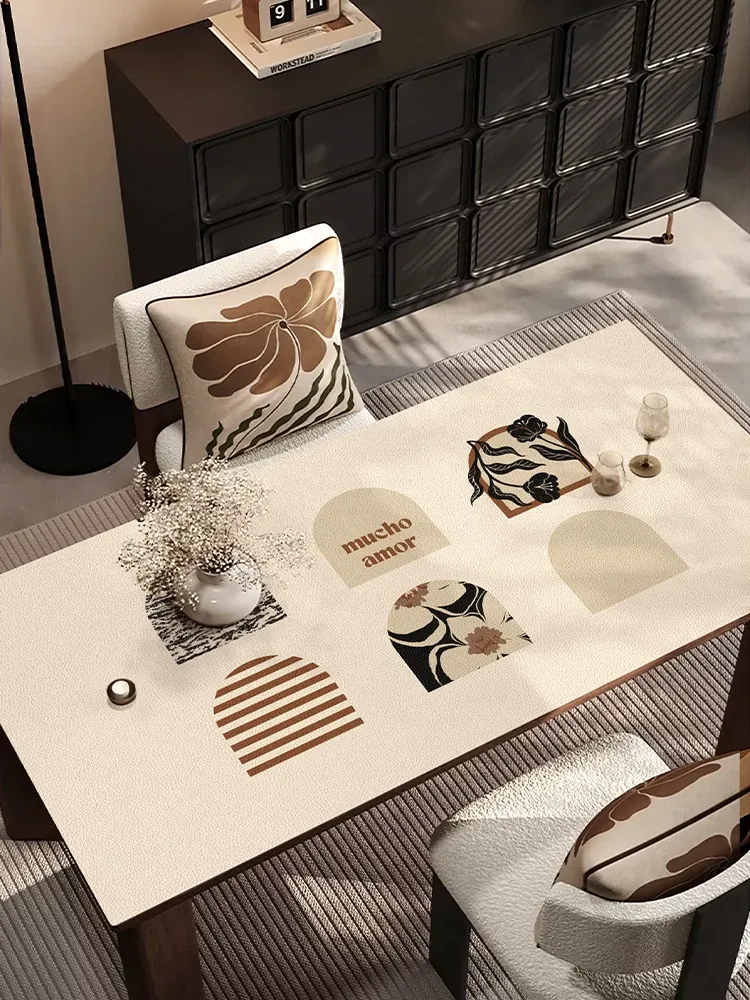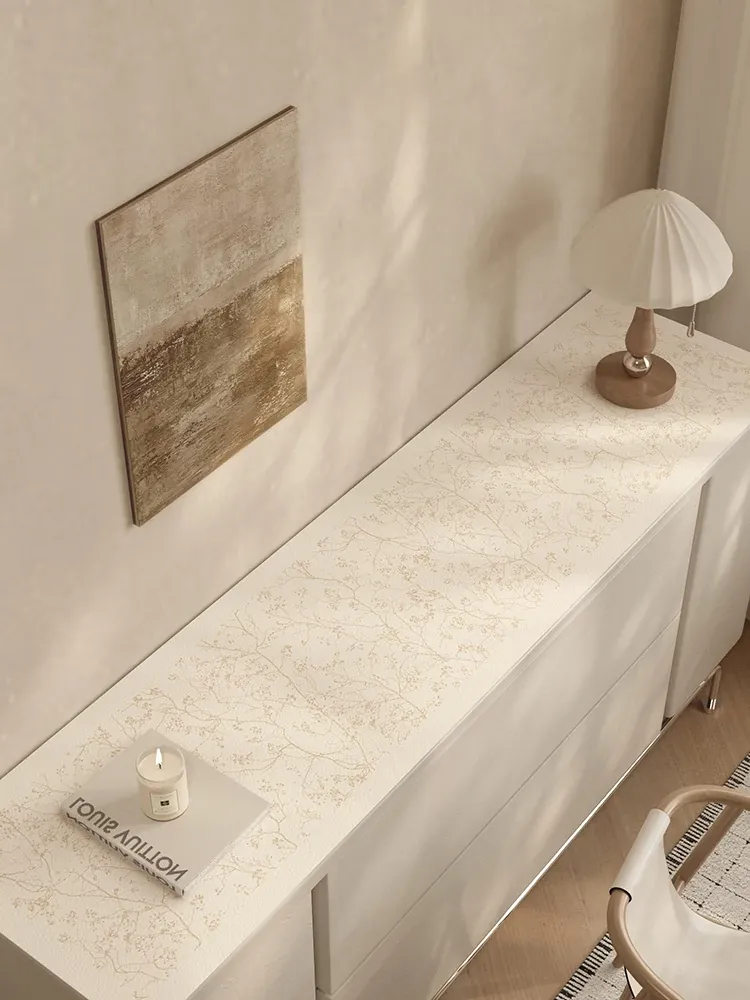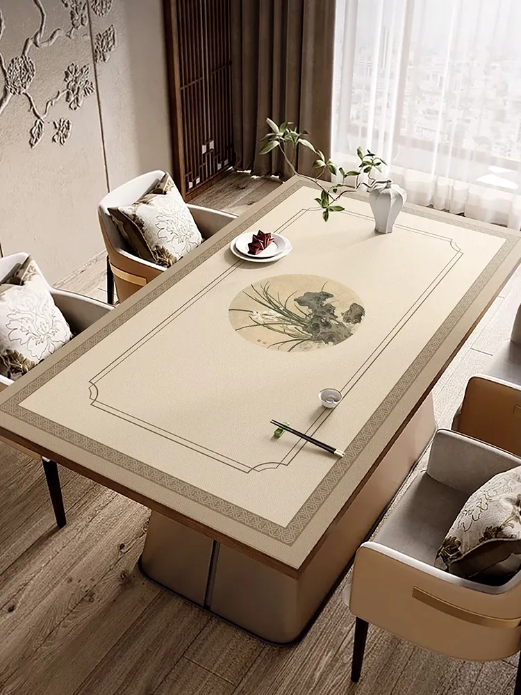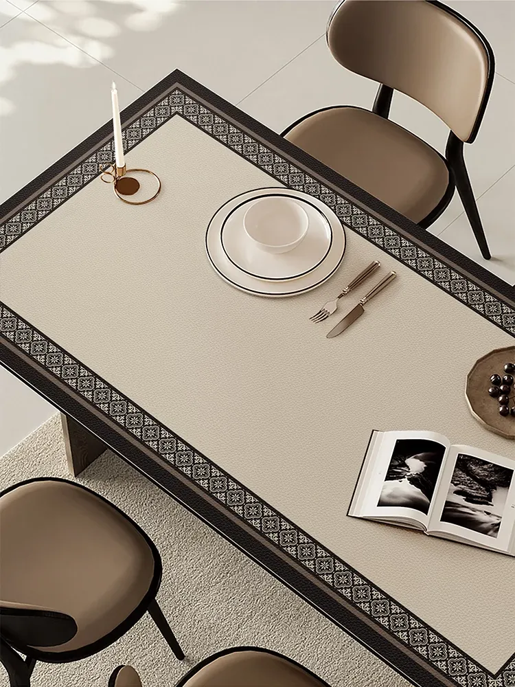 新中式防水防油のテーブルクロス - 2025年新作!テレビ台、玄関、靴箱、ワインキャビネットに最適なレザー調マット。おしゃれで機能的なインテリアを演出します!