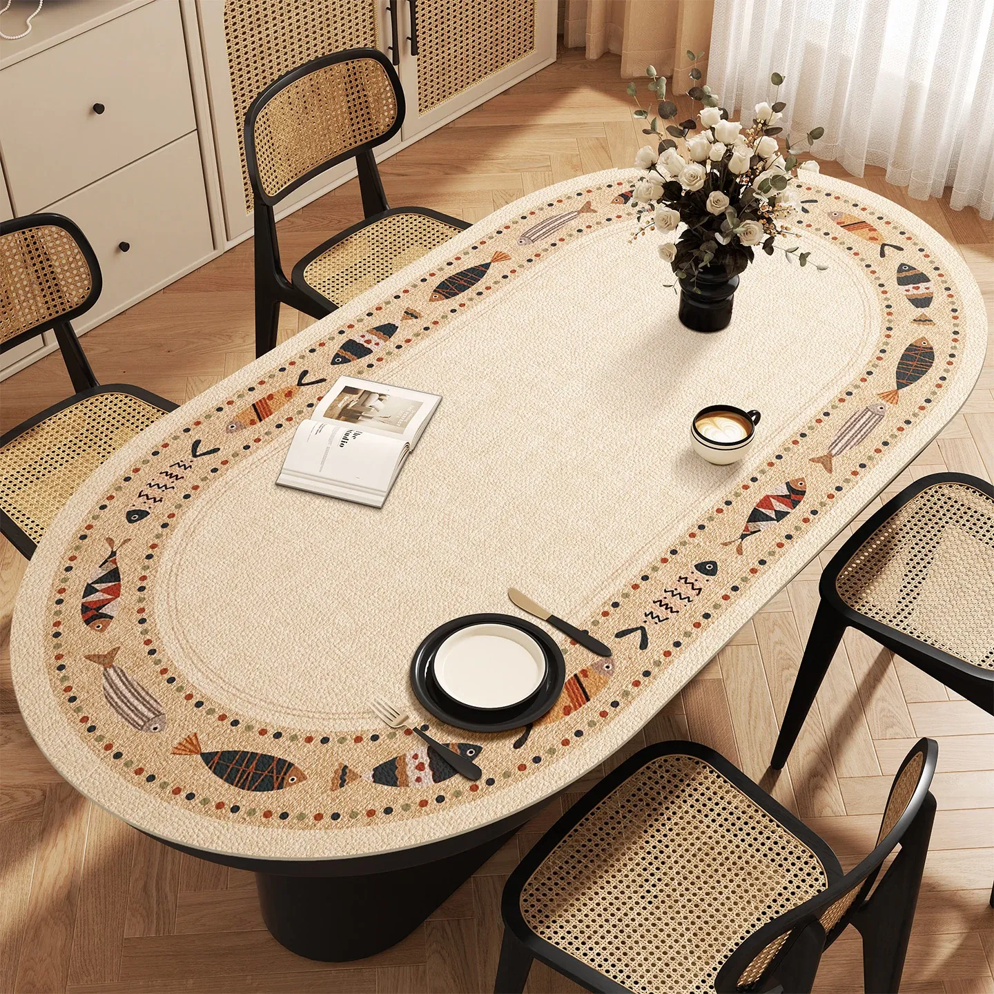 防水・防油の楕円形テーブルクロス!お手入れ簡単なPVCレザー製で、耐熱性もバッチリ!おしゃれなカフェテーブルや書斎にぴったりのテーブルマット。高温にも強く、食事も安心して楽しめます!