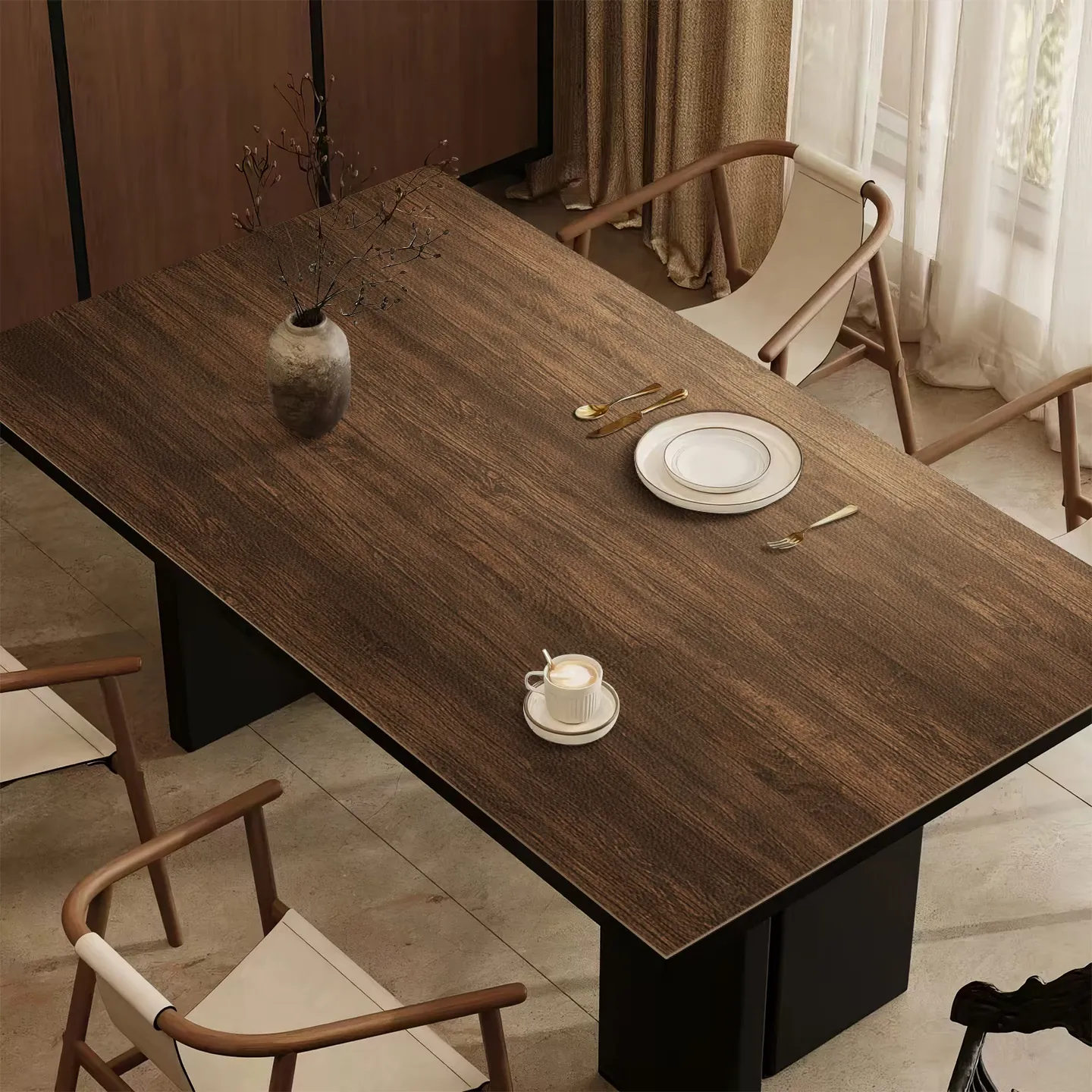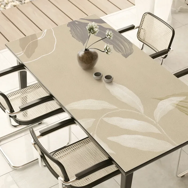 高級感あふれる侘び寂び風の日本式テーブル保護クロス - 食卓やサイドボード、コーヒーテーブルに最適!防熱・防油・防水のレザー素材で、お手入れも簡単。おしゃれで機能的な生活空間を演出します!