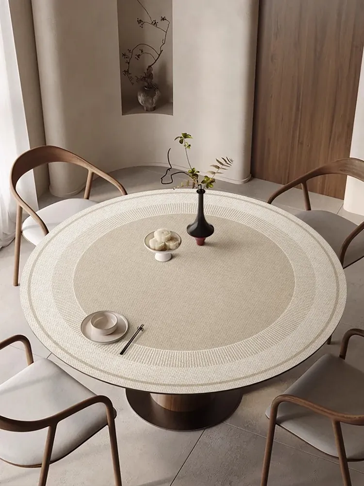 侘寂風デザインの防水・防油・防熱・洗濯不要のラウンドテーブルクロス - 高級感あふれるおしゃれな円形テーブルマット、汚れに強く、いつでも清潔に保てます!