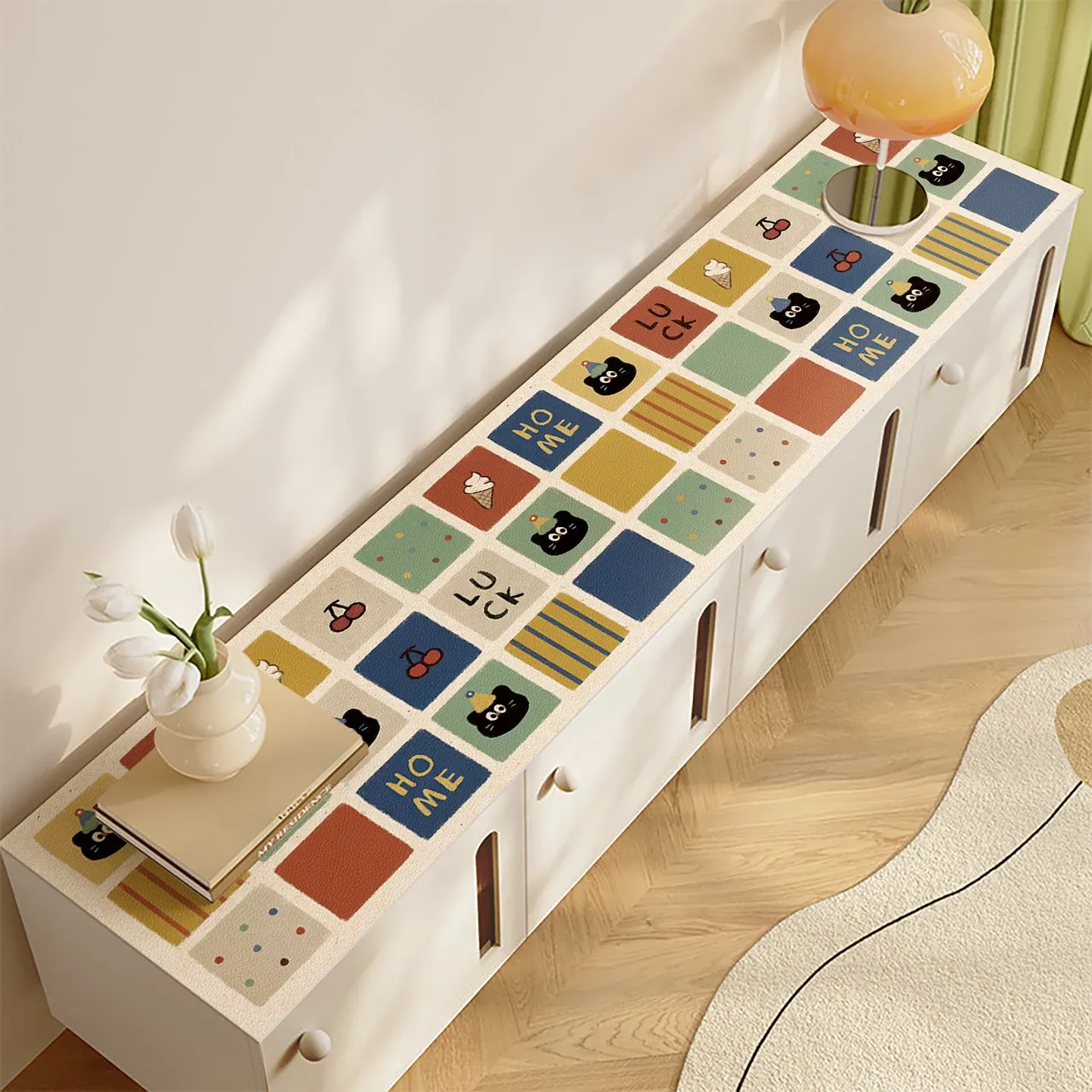 新型カートゥーン防水・防油・防熱テーブルマット 2025年最新作!汚れに強いレザー素材で、テレビボードやバーキャビネットのデスクトップをしっかり保護。おしゃれで実用的なインテリアアイテム!