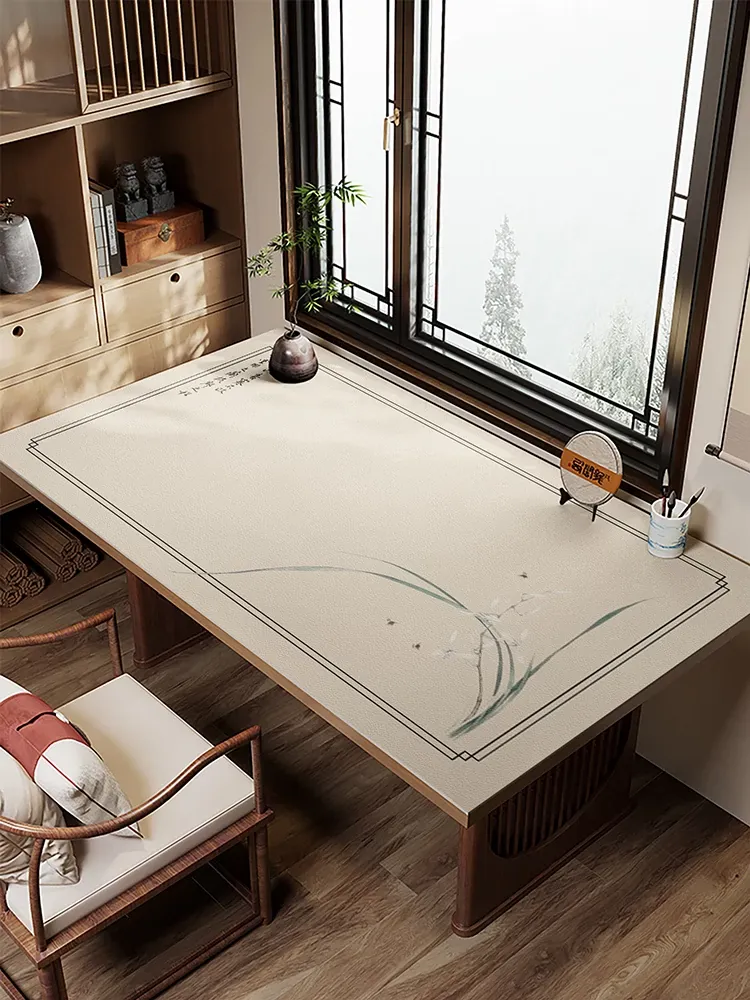 新中式デザインの書道デスクマット - 防水&防油、耐熱性に優れたレザー製!お手入れ簡単で、学習スペースを美しく保護します。