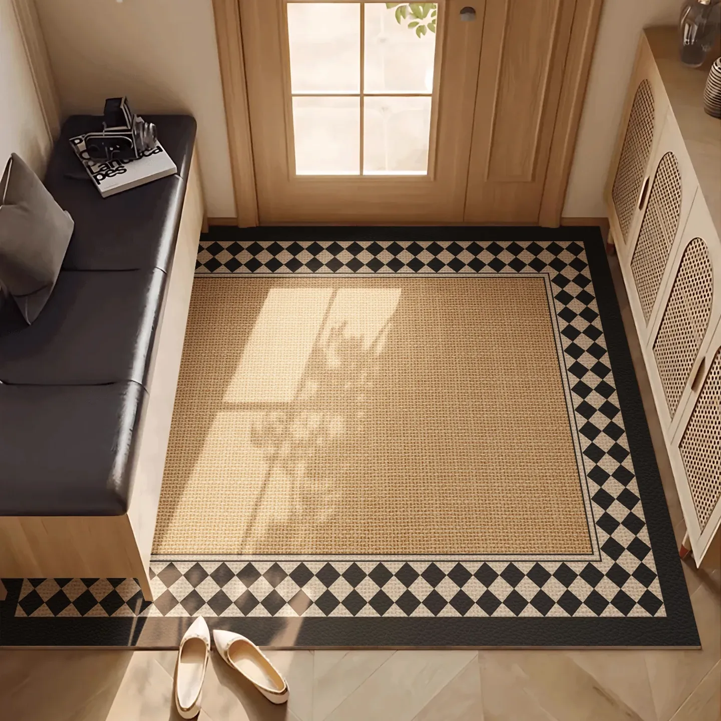 ヴィンテージスタイルの玄関マット - レザー製で滑り止め機能付き、カット可能なデザイン。汚れに強く、エントランスをスタイリッシュに演出する必須アイテム!