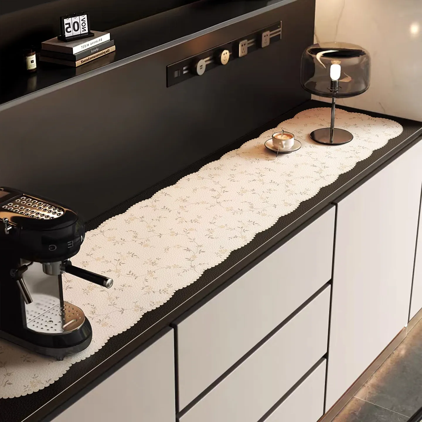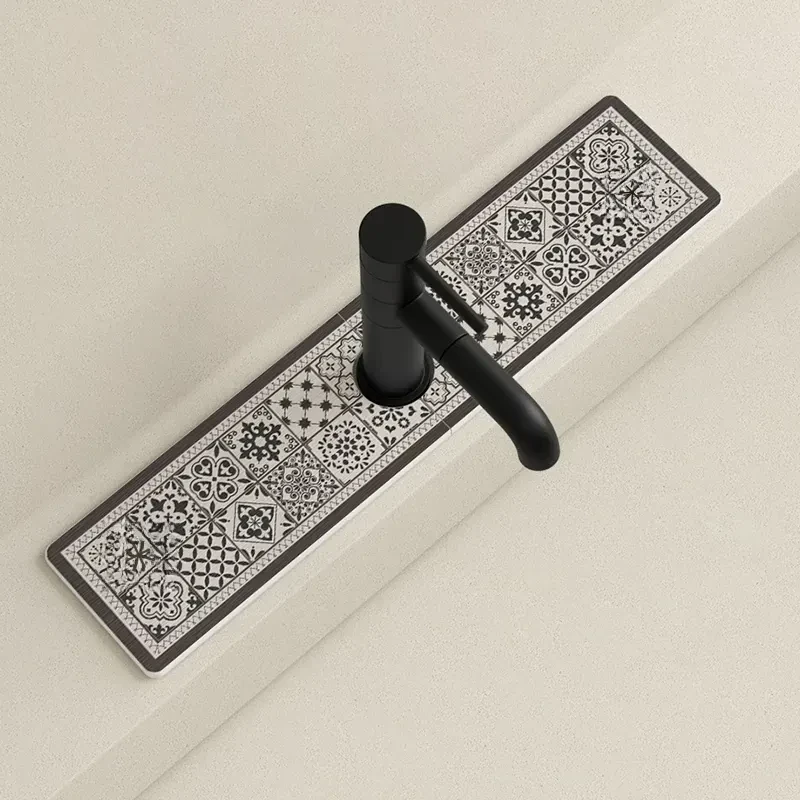 北欧風デザインのキッチン・バスルーム用吸水速乾シリカゲルマット - おしゃれで実用的な吸水マット、洗面台やカウンターに最適!快適な生活空間を実現します。