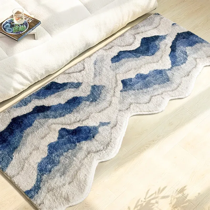 海の波デザインの厚手カーペット - 寝室やリビングにぴったりなソファやテーブルの下に最適!ふわふわのクッション性で、足元を優しく包み込み、リラックスした空間を演出します。