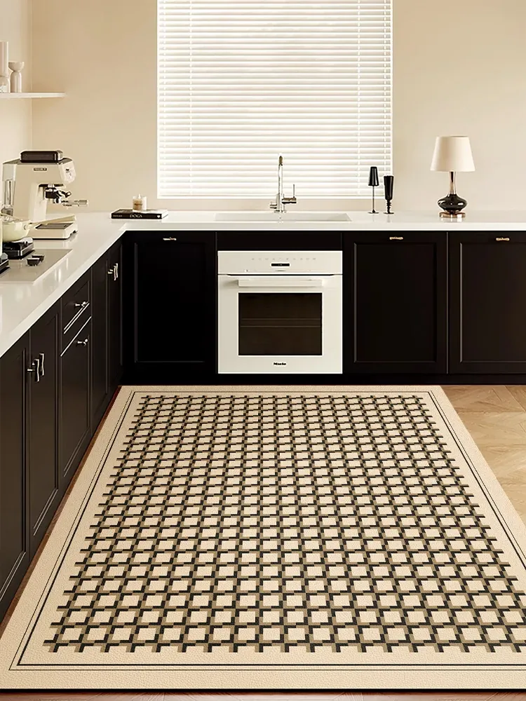 防水・防油・防滑!お手入れ簡単なPVC製キッチンマット - 皮革風デザインで耐久性抜群!汚れに強いフルカバータイプのフロアマットで、快適なキッチン作りをサポートします!