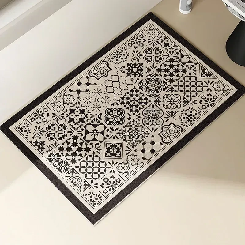 おしゃれで機能的!浴室用ソフトシリカ泥吸水マット - 和の侘寂風デザイン、トイレ入口にぴったりな滑り止めマットで、快適なバスルーム環境を実現!