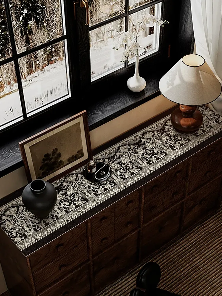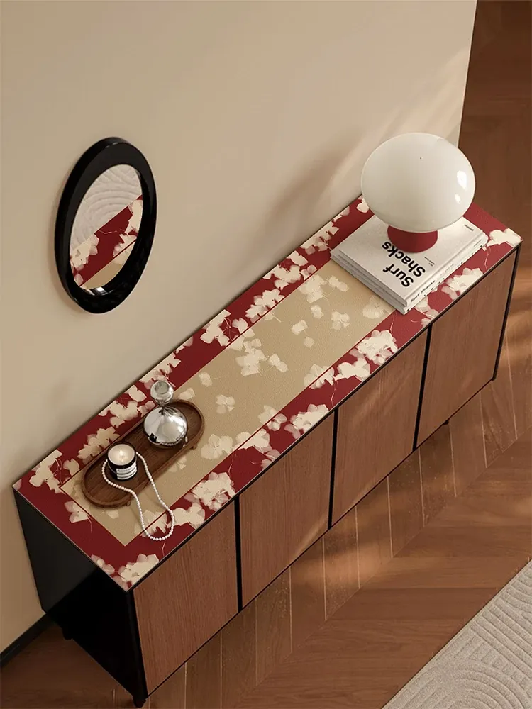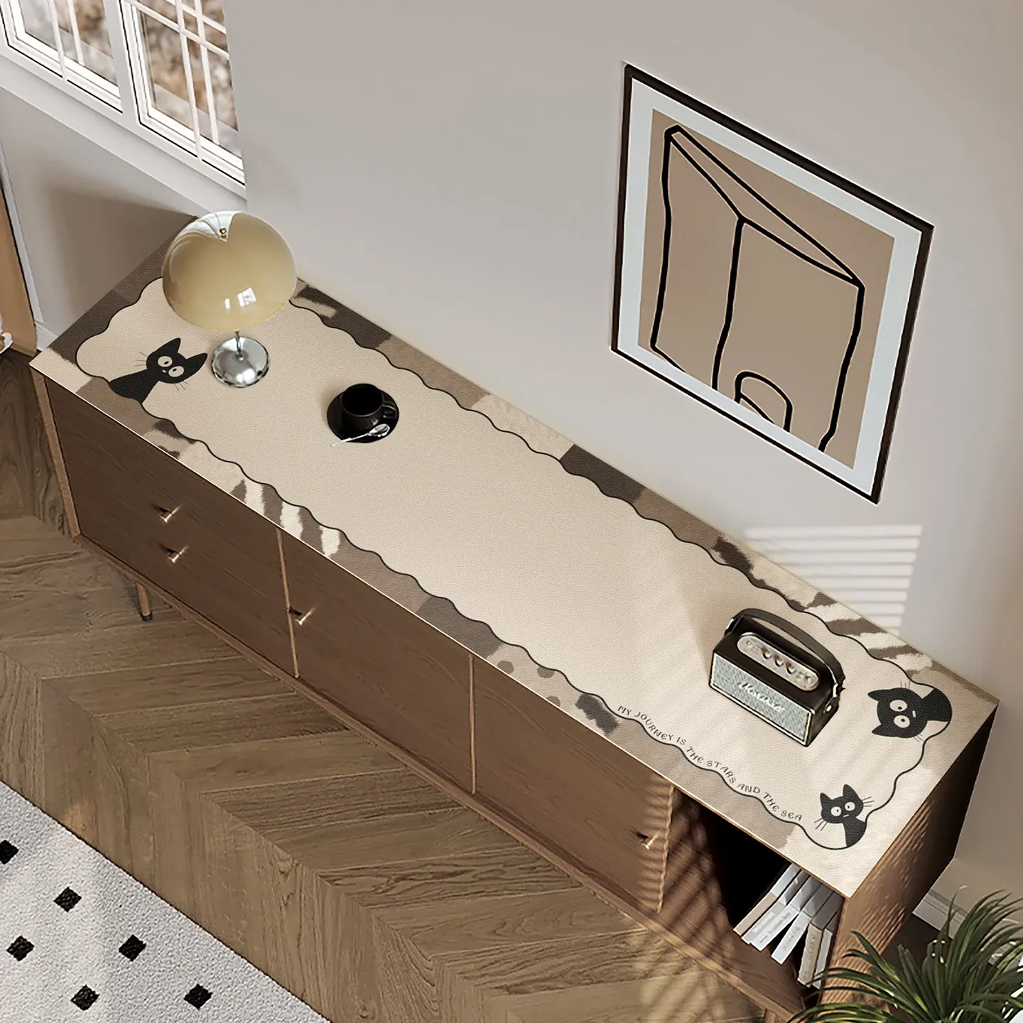 レトロスタイルの新作サイドボードテーブルクロス!テレビ台や玄関の靴箱に最適な防水・防油マット。汚れに強く、耐磨耗性も抜群で、おしゃれなインテリアを演出します。お部屋を美しく保つ必需品!