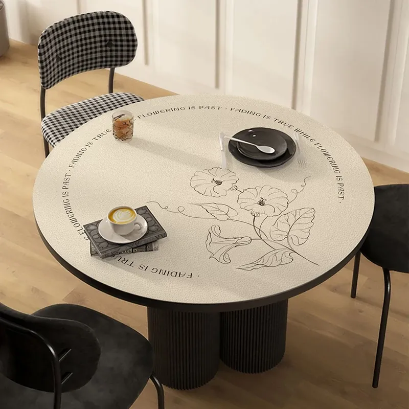 清新な花柄ラウンドテーブルマット|高級感溢れる軽やかなデザイン|防水・防油のPVCレザー製|お手入れ簡単なティーコーヒーマットで、日常を華やかに演出!