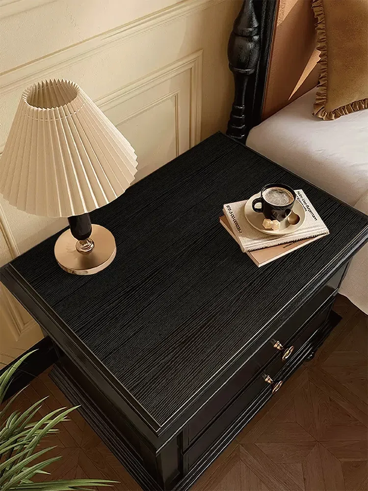 軽奢感漂う木目調ベッドサイドテーブル用デスクマット - お手入れ簡単!防水・耐汚れ・防塵で、どんなお部屋にもフィットするスタイリッシュなカバーです。