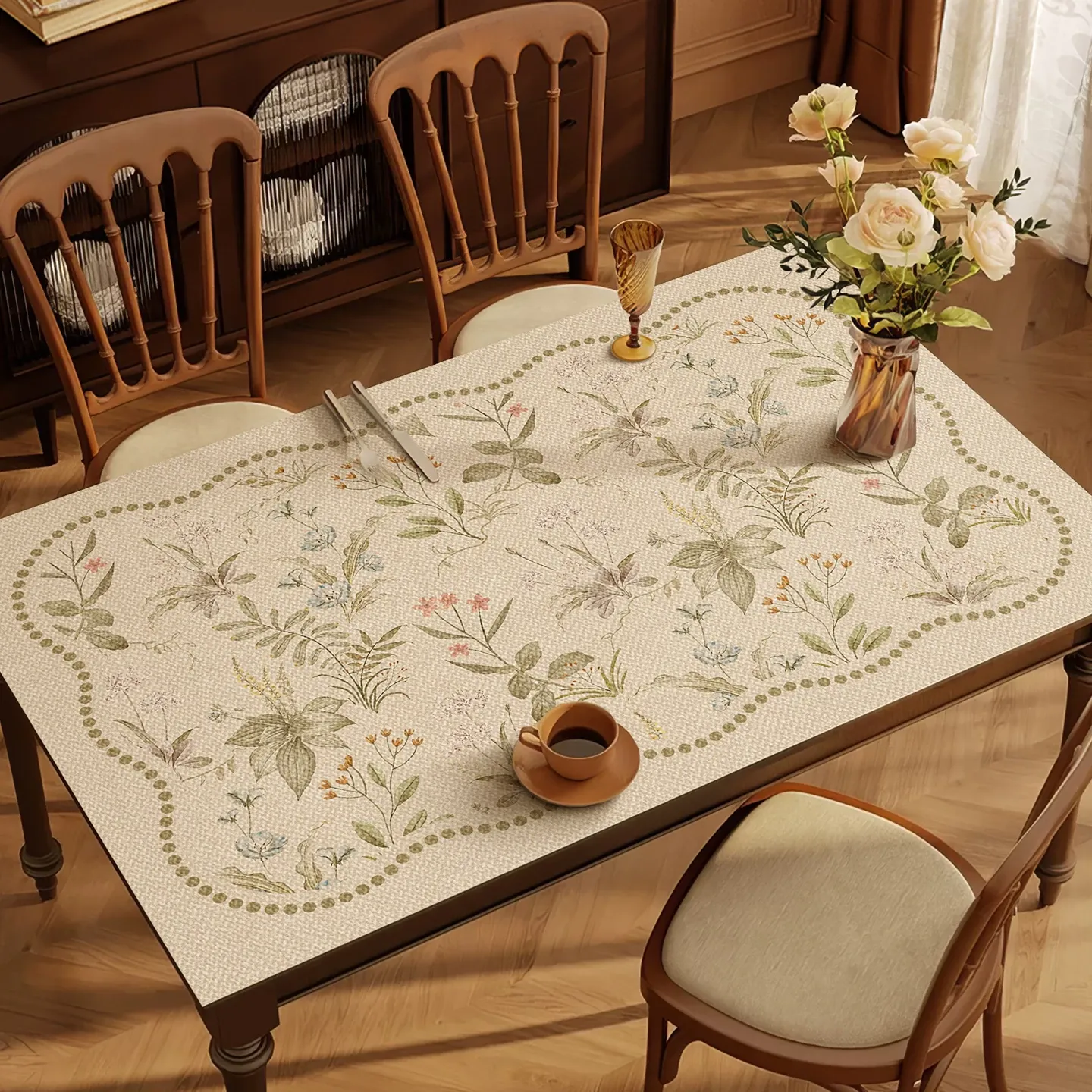 フランス風防水防油テーブルクロス - 花柄デザインの洗えるレザー製マット、テレビ台・ワインキャビネット・玄関・シューズキャビネットに最適!お手入れ簡単でスタイリッシュなインテリアを演出します。