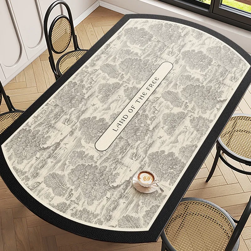 フレンチスタイルの楕円形テーブルマット - 防水・防油・耐熱のデスクトップ保護マット、コーヒーテーブル用レザークロス。おしゃれで機能的なインテリアを演出します!