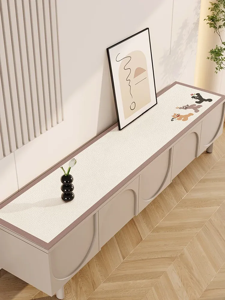 防水・防油の高級感漂うリビング用テレビボードマット PVC製お手入れ簡単・洗浄不要のレザー風テーブルクロス、シューズキャビネットやダイニングボードにも最適!