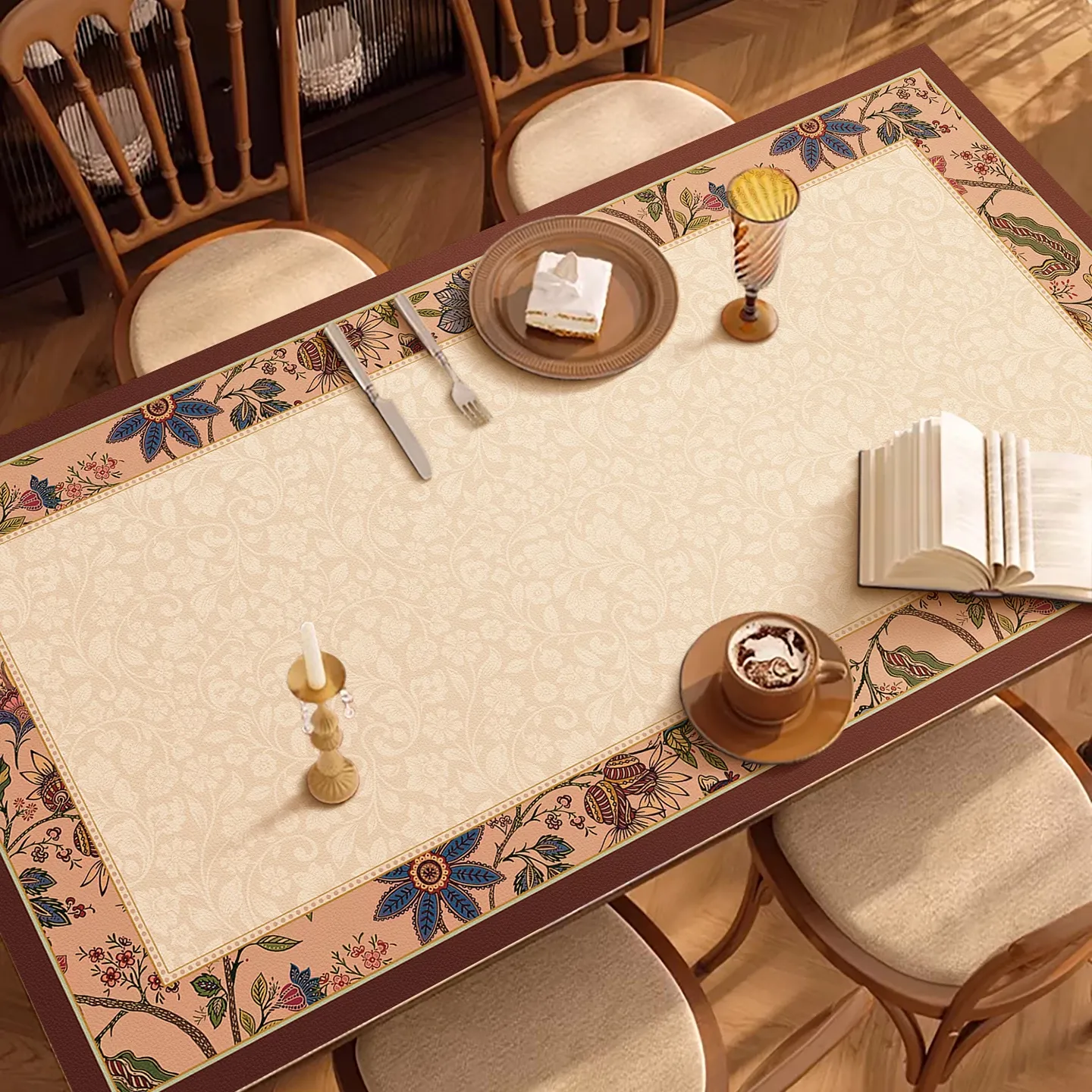 新中式防水防油のテーブルクロス - 2025年新作!テレビ台、玄関、靴箱、ワインキャビネットに最適なレザー調マット。おしゃれで機能的なインテリアを演出します!