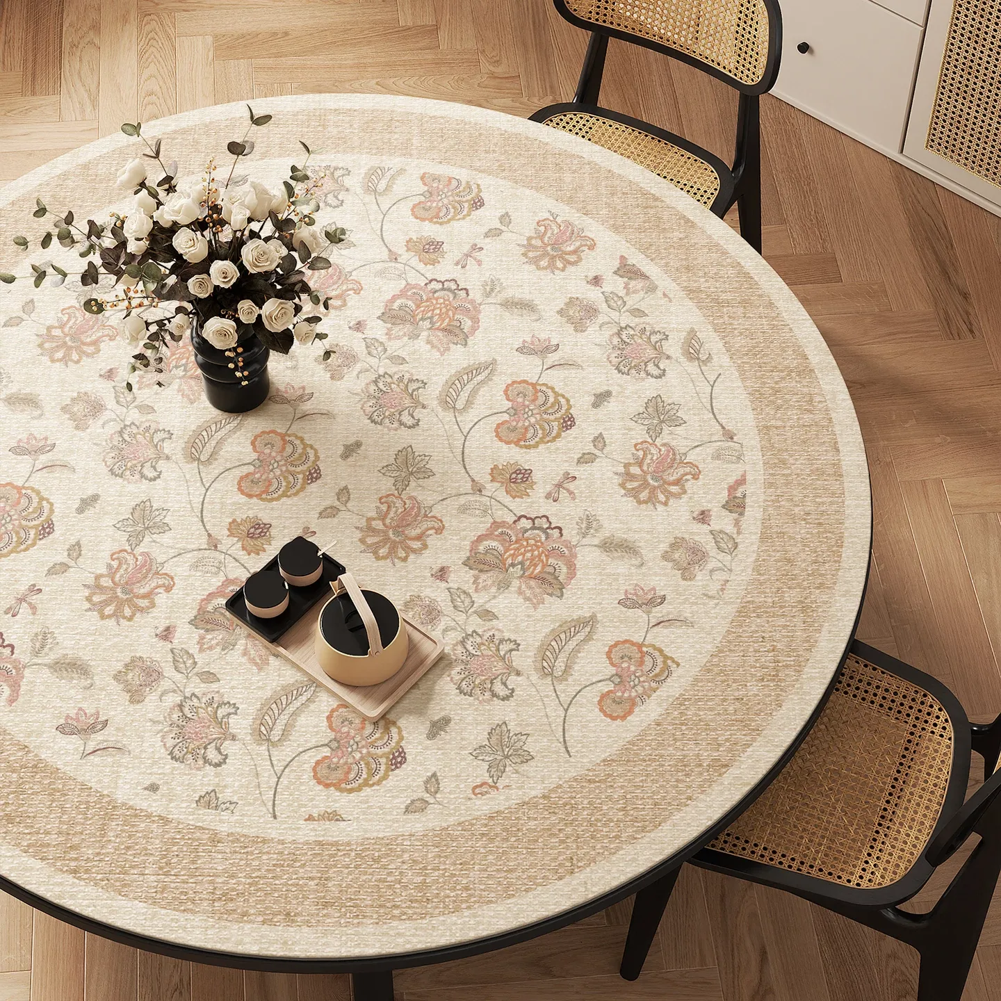 侘寂風デザインの防水・防油・防熱・洗濯不要のラウンドテーブルクロス - 高級感あふれるおしゃれな円形テーブルマット、汚れに強く、いつでも清潔に保てます!