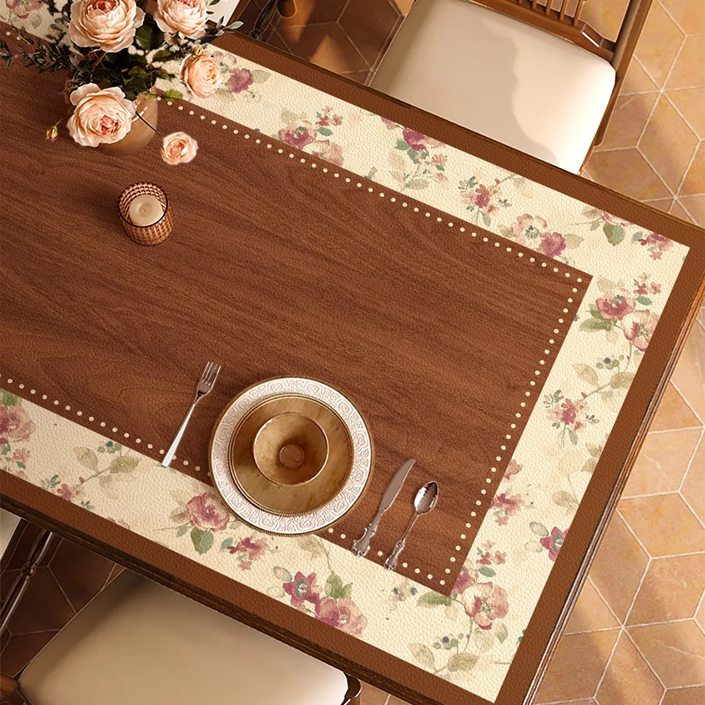 高級感あふれる侘び寂び風の日本式テーブル保護クロス - 食卓やサイドボード、コーヒーテーブルに最適!防熱・防油・防水のレザー素材で、お手入れも簡単。おしゃれで機能的な生活空間を演出します!