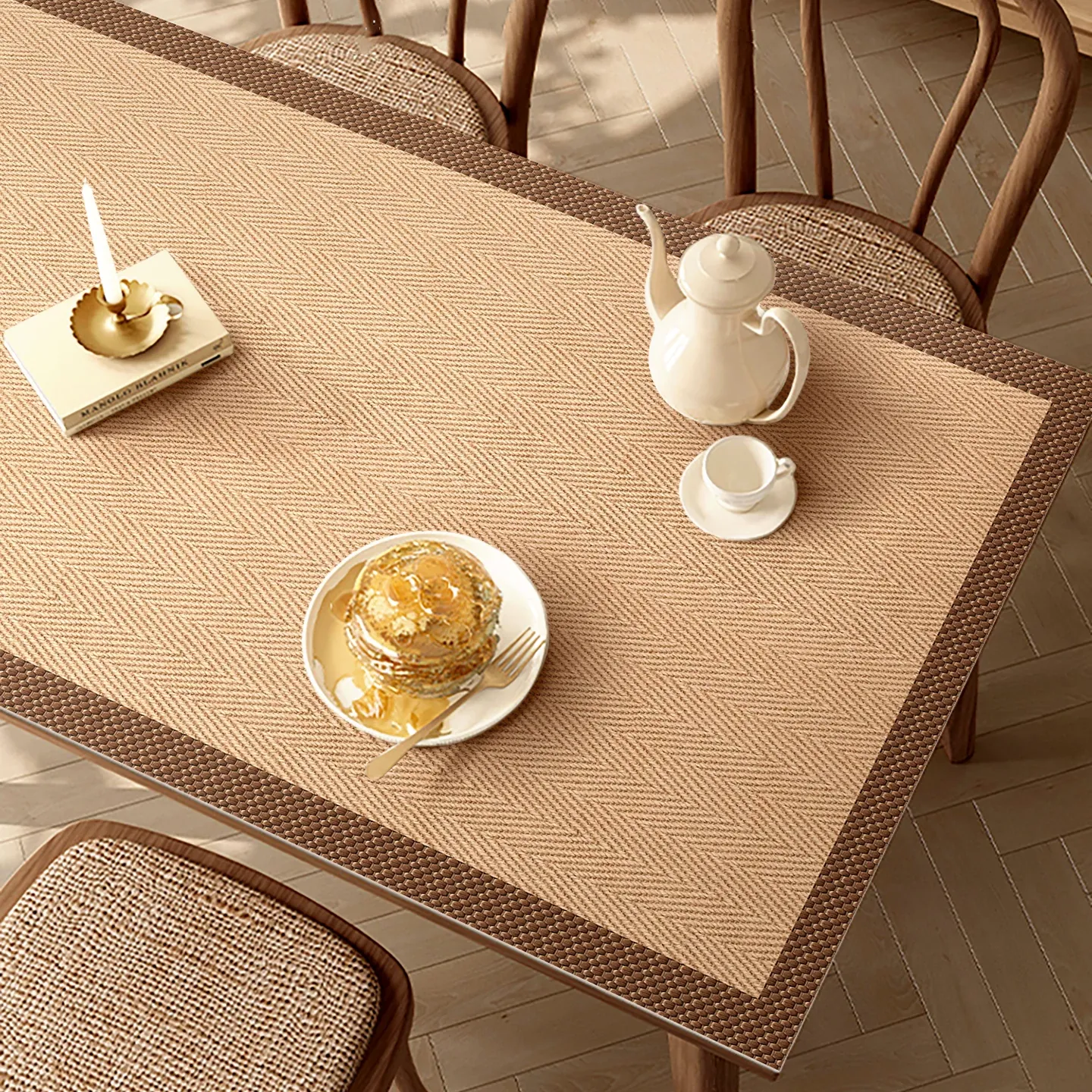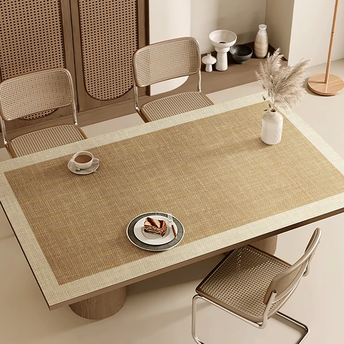 防水・防油・耐熱・防塵の四重機能!おしゃれな編み込みデザインのスクエアテーブルマット - テーブルや茶卓をしっかり保護する必須アイテム!