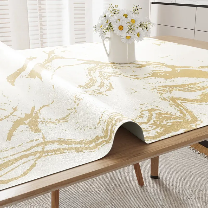 北欧風大理石模様の防水・防油・洗浄不要テーブルクロス!PVCレザー製でデスクトップをしっかり保護、耐熱・耐焼き付きで安心!おしゃれで実用的なダイニングテーブルマット!