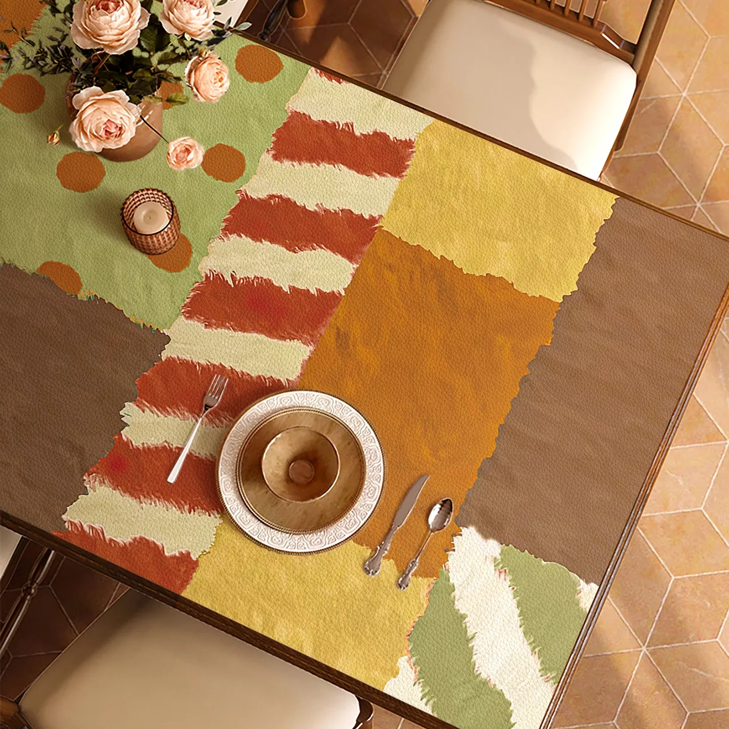 防水・防油・お手入れ簡単!おしゃれな北欧風PVCレザー製テーブルクロス。高級感あふれるデザインで、熱を遮断し、食卓をエレガントに演出します。