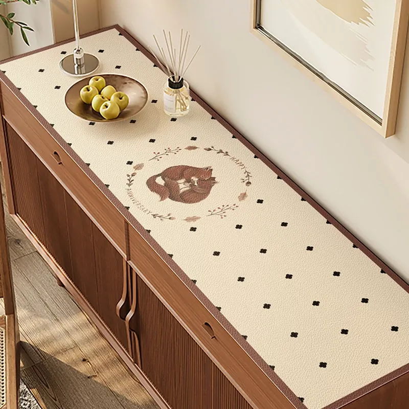 レトロテレビボード用マットテーブルクロス | 高級感漂う軽奢スタイル | 防水・防油・耐熱のレザー製デスクマット | シューズキャビネットにも最適 | お洒落なダイニングサイドボードにぴったり!